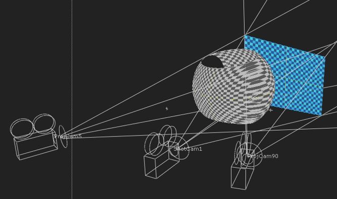 The image (below) shows the texture smearing on the side of the sphere as the projection camera reaches its coverage threshold.